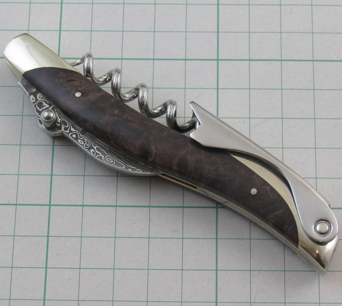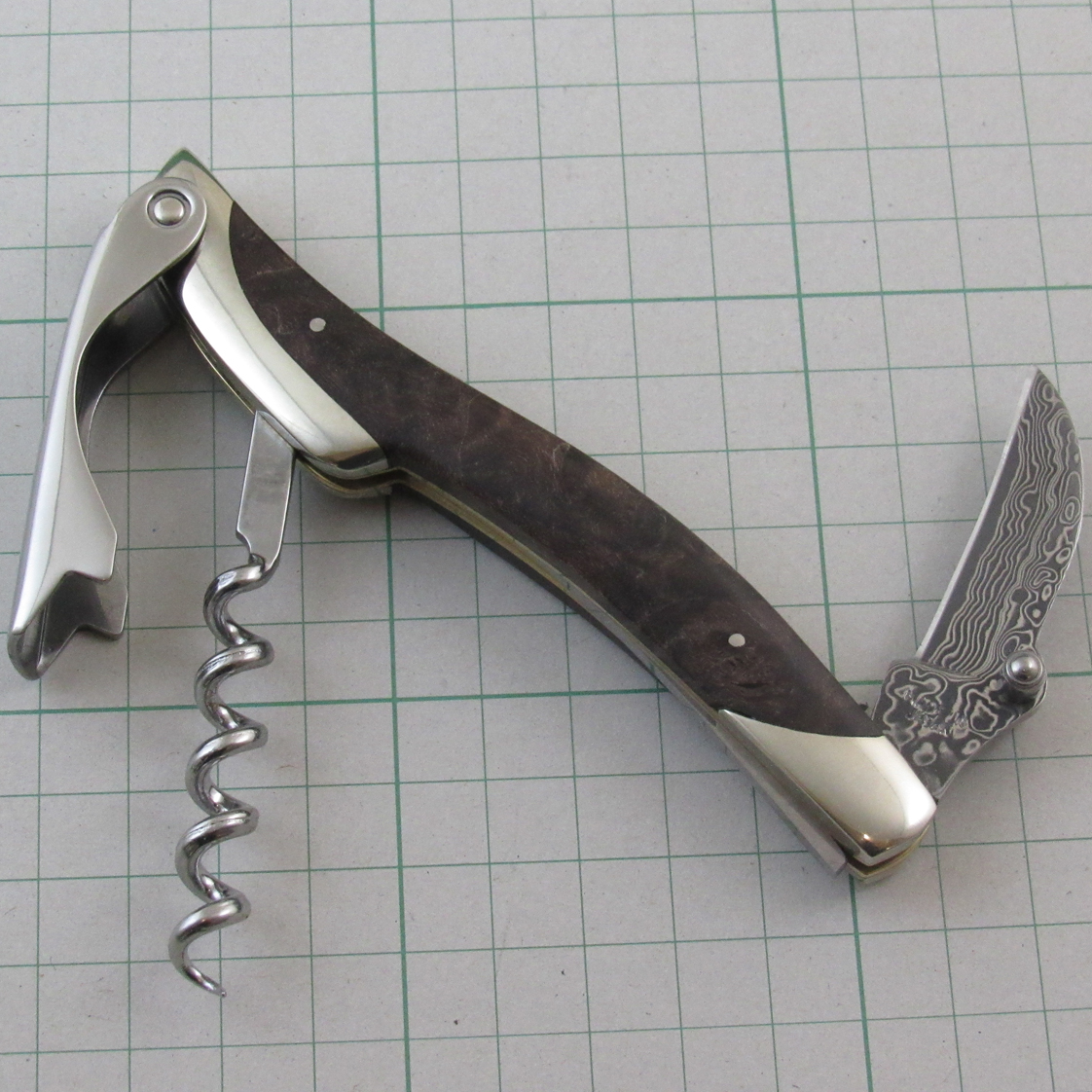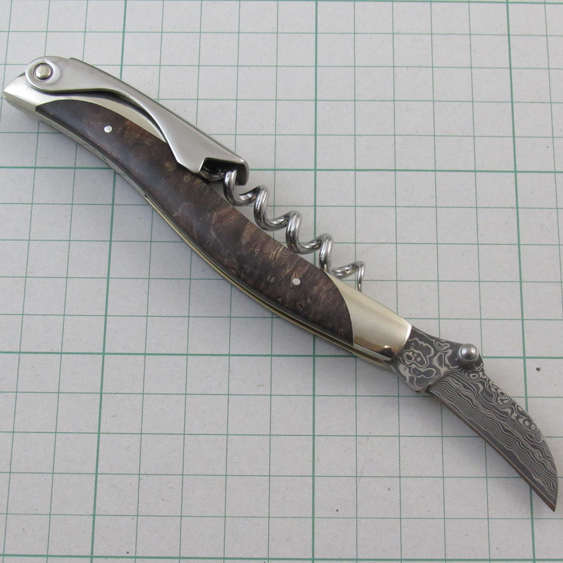 ダマスカス鋼 / ニッケルシルバー & バールウッドハンドル全長120mm