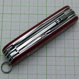 Large blade / Small blade / Can opener / Bottle opener / Corkscrew / Reamer / Sewing eye / Flathead screwdriver (large and small) / Wire stripper / Two-spic / Tweezers (tweezers) / Scale drop / Needle removal / Scale / Pliers / Terminal crushing / Wire cutter / Key ring Handle length 91mm / Blade length 68mm & 41mm / Handle thickness 21mm / Weight 110g