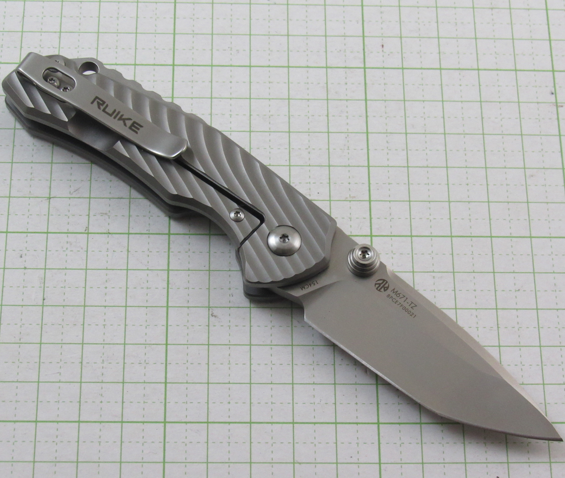 154CM steel (Tantou Blade) / Handle material – Titanium (spiral processing) Blade length 70mm / Handle length 95mm Blade thickness 3.5mm / Weight 100g *Frame lock *With belt clip *With bearing