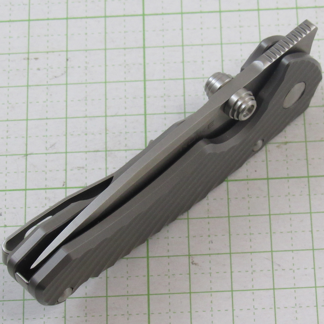 154CM鋼(タントウブレード) / ハンドル材-チタン(スパイラル加工)刃長70mm / 柄長95mm刃厚3.5mm / 重量100g※フレームロック※ベルトクリップ付き※ベアリング付き