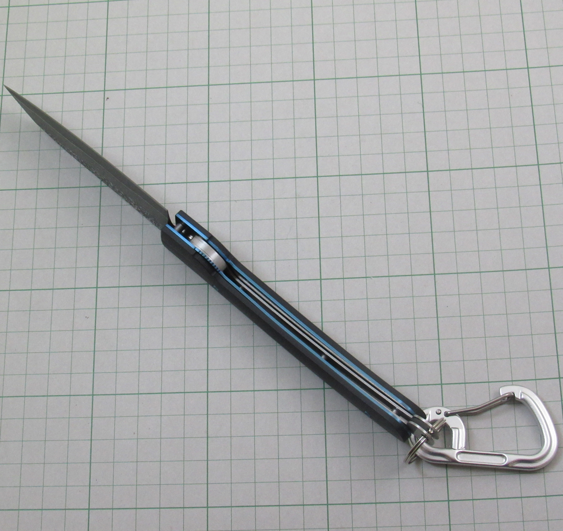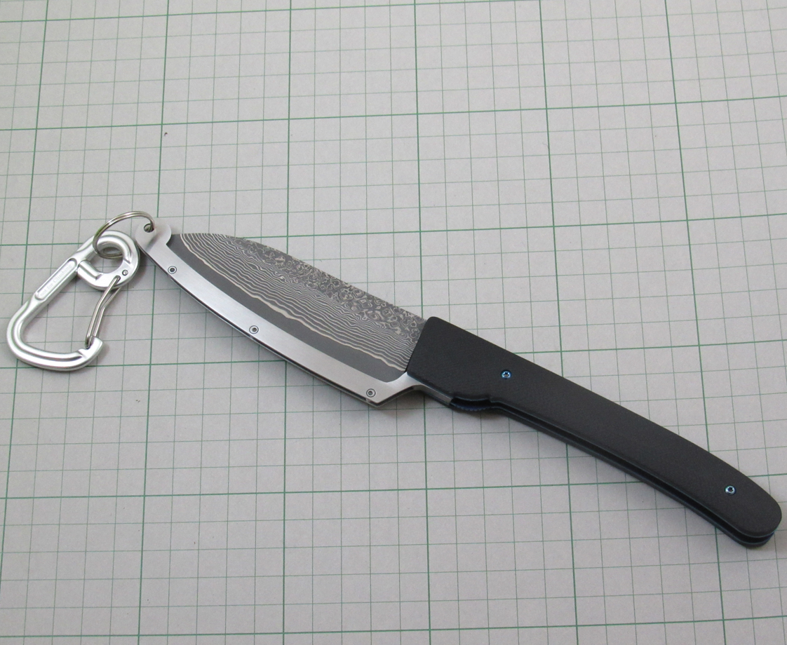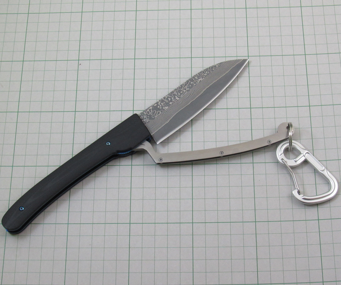 VG-10 steel multilayer / Black G-10 handle / Liner lock (blade cover) Blade length 110mm / Handle length 140mm / Blade thickness 3.5mm / Weight 150g * Hanging type with a snap hook