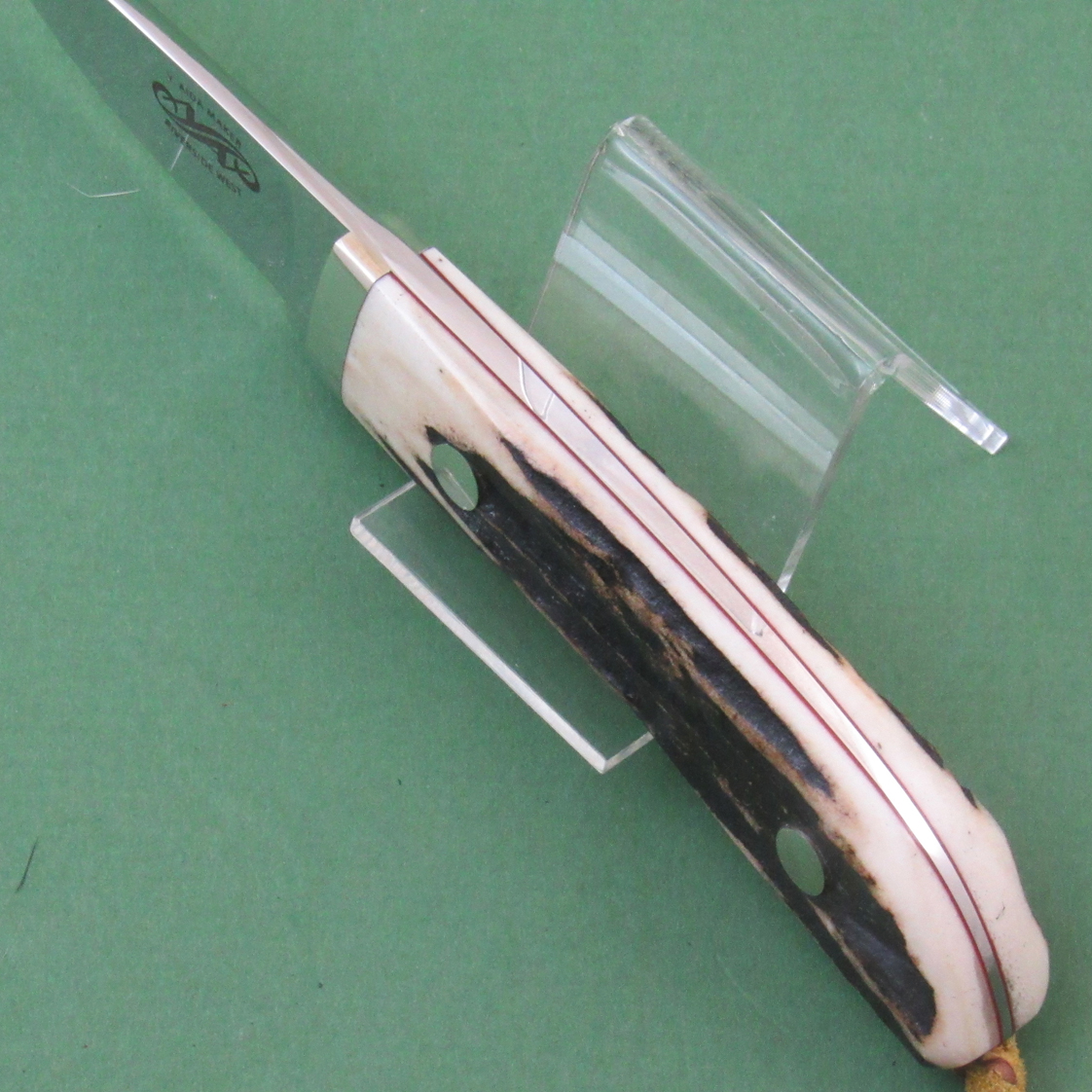 ATS-34 steel (mirror finish) / Sunbar Stag handle / Nickel Silver Hilt blade length 52mm / Handle length 85mm / Blade thickness 3.0mm / Weight 60g