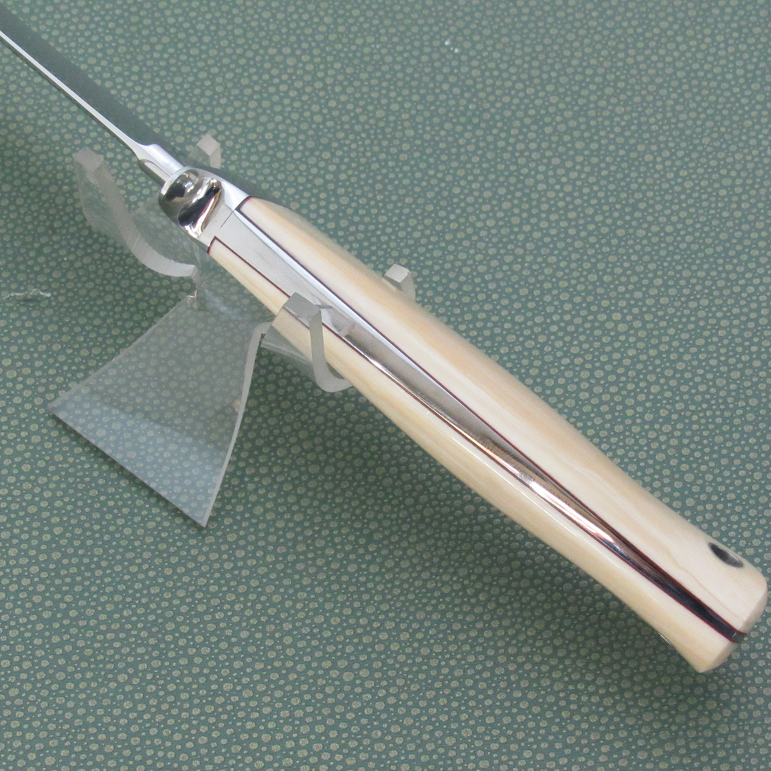ATS-34 steel (mirror finish) / Mammoth Ivory (Fangs) / Stainless steel double guard / Hydun bolt (hidden bolt) / Red spacer blade length 138mm / Handle length 125mm / Blade thickness 6.0mm / Weight 290g