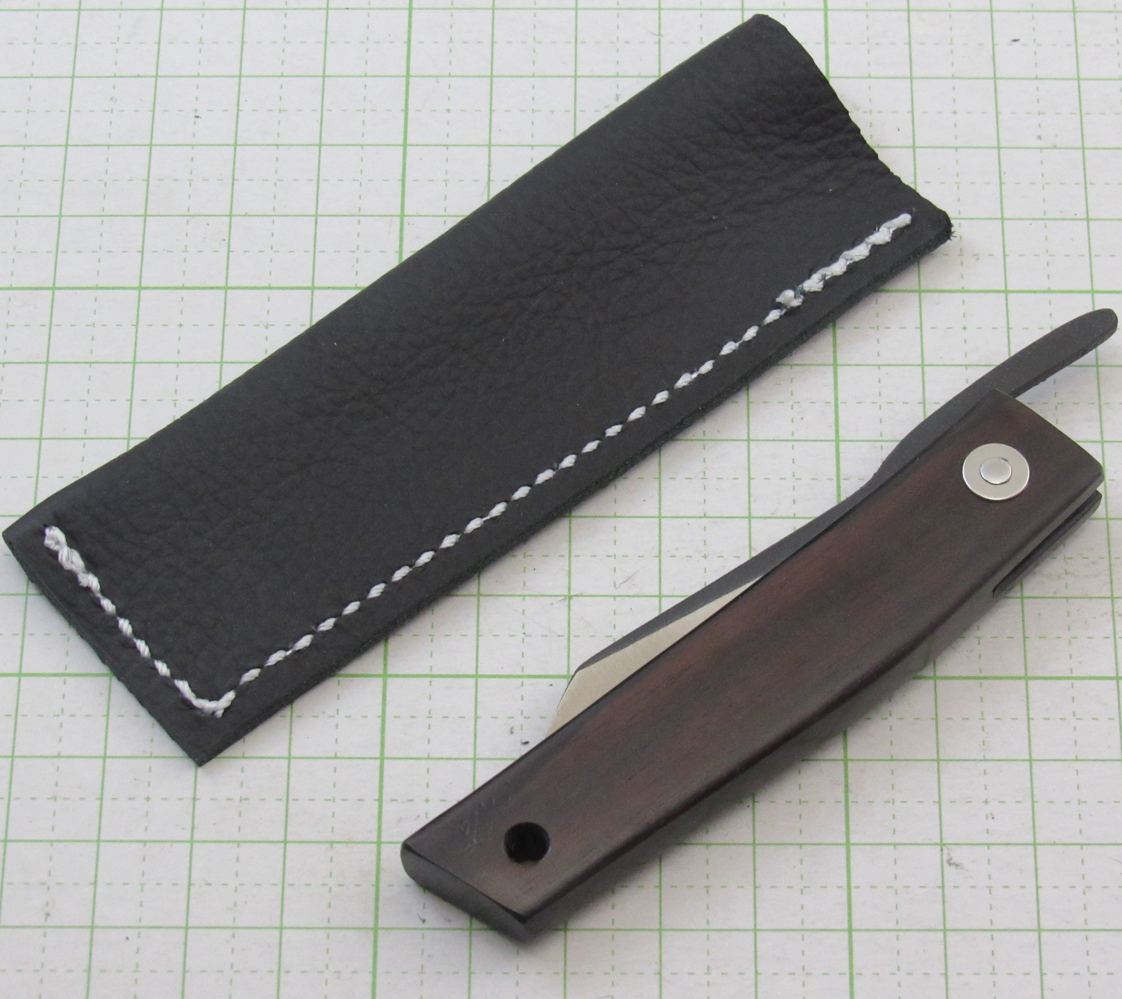 D2鋼 / エボニーウッド(黒檀)刃長55mm / 柄長85mm/ 刃厚2.0mm / 重量20g※専用皮ナイフケース付き