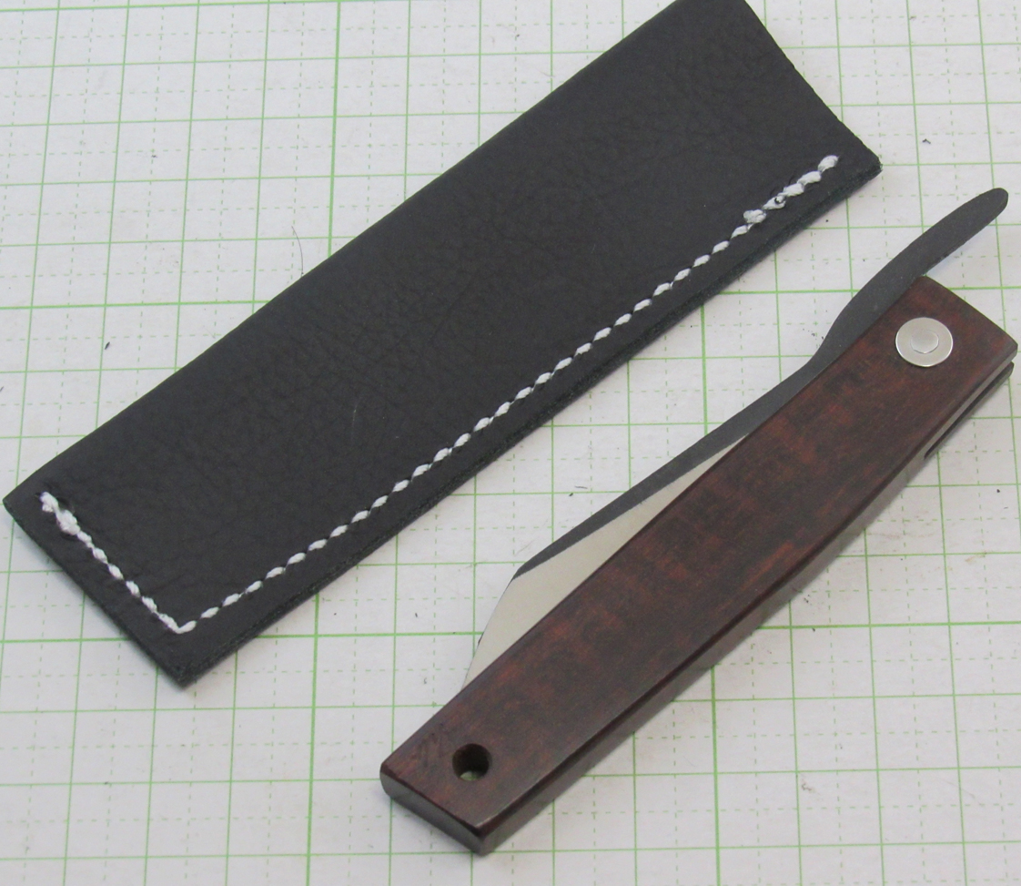 D2鋼 / スネークウッド刃長69mm / 柄長100mm/ 刃厚2.0mm / 重量20g※専用皮ナイフケース付き
