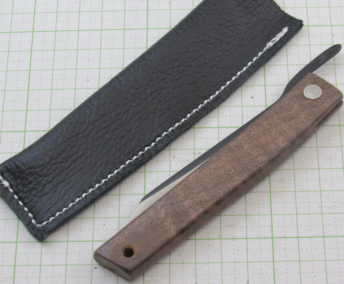 D2鋼 / ウォールナット・ウッド刃長90mm / 柄長120mm/ 刃厚2.0mm / 重量40g※専用皮ナイフケース付き