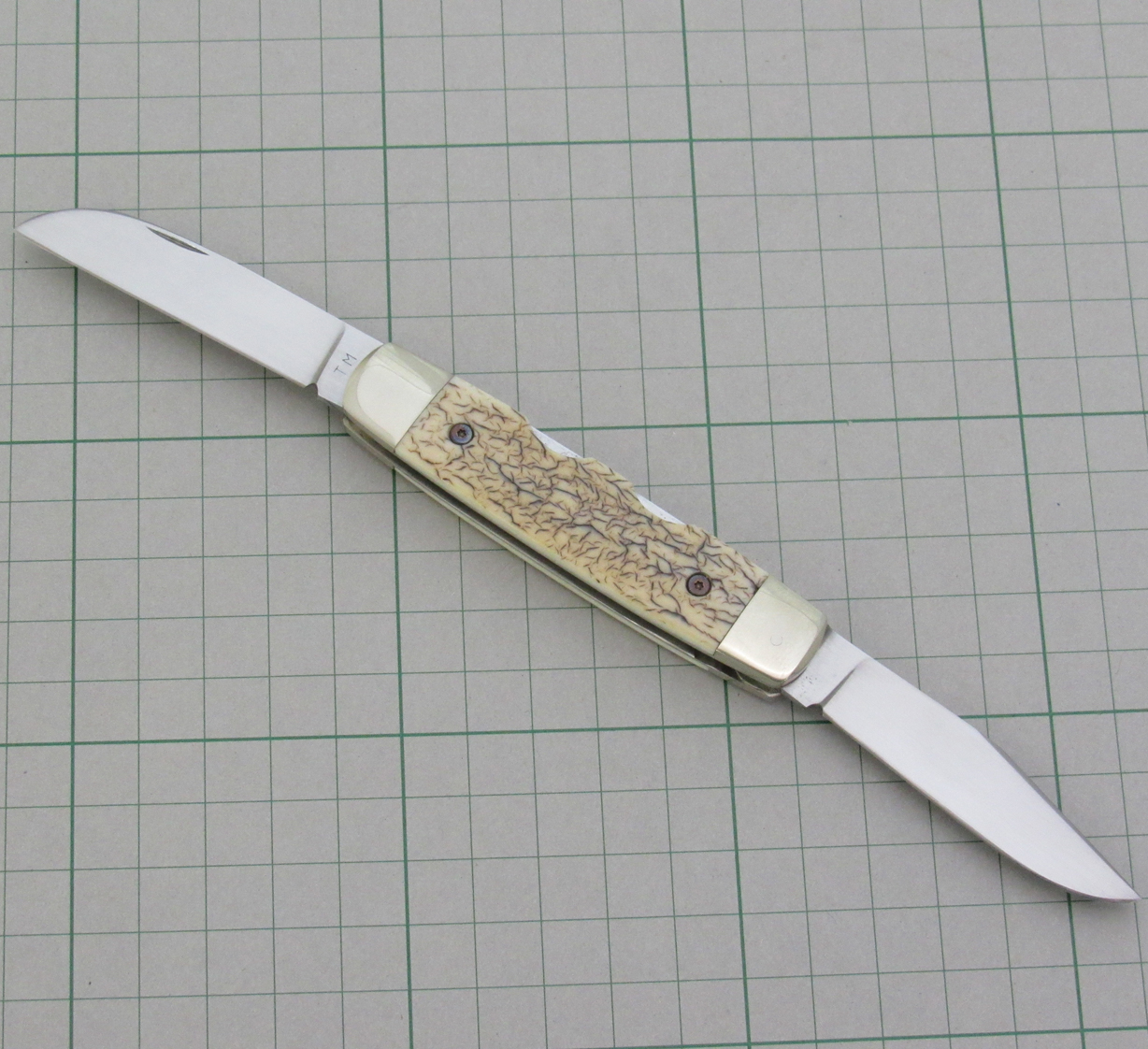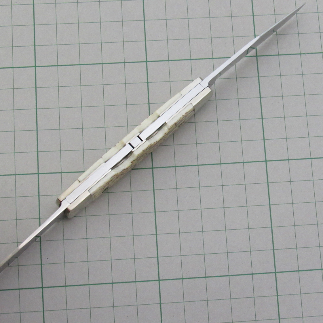 ATS-34鋼 / アイボリーバークハンドル /ニッケルシルバーボルスター & シールド刃長60mm / 柄長83mm / 柄厚12mm / 重量70g