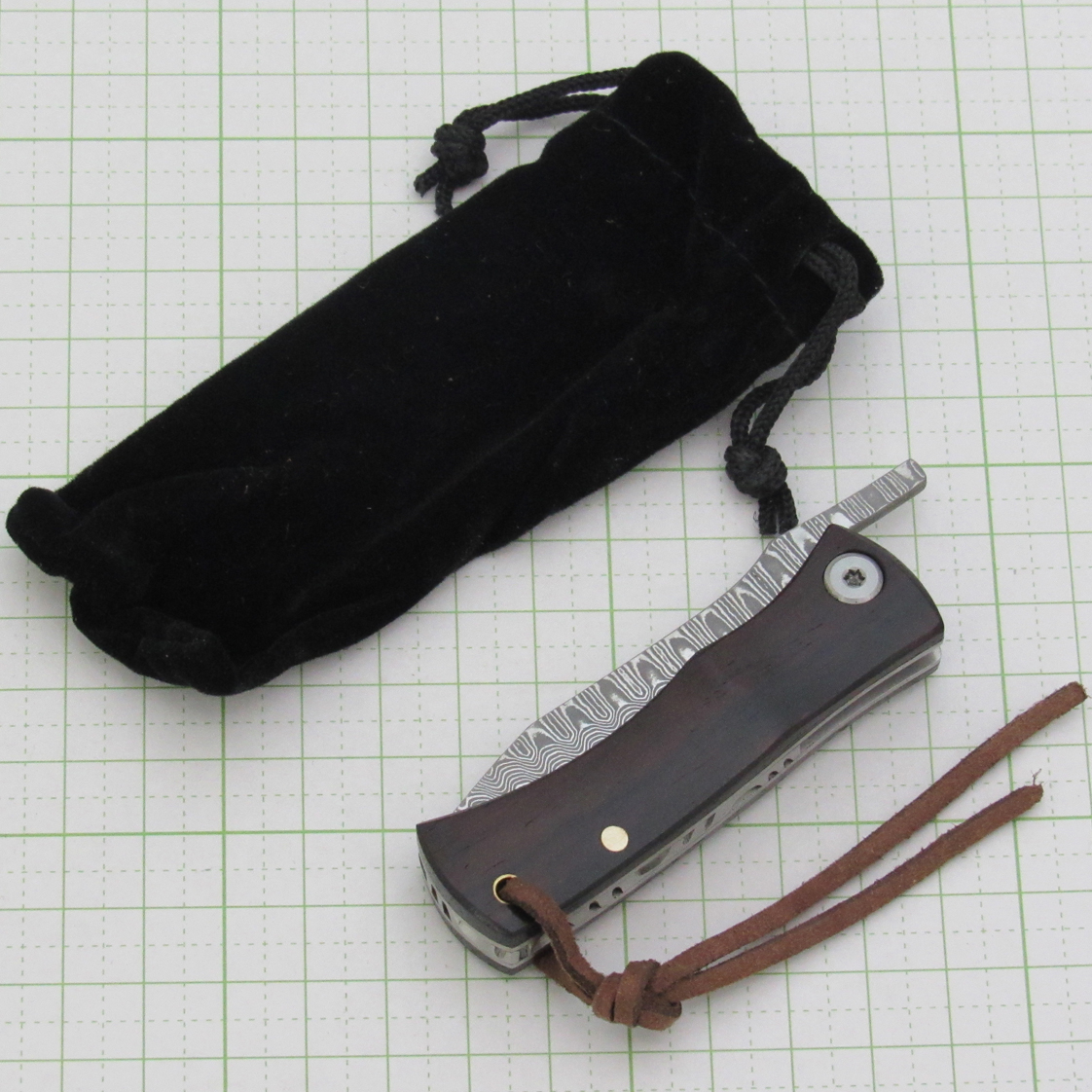 8CR steel Damascus / Cocoboro wood handle Blade length 57mm / Handle length 74mm / Blade thickness 2.3mm / Weight 60g *No lock