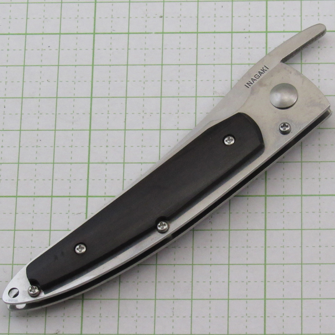 VG-10 steel multilayer (mirror finish) / Ebony handle Blade length 80mm / Handle length 107mm / Weight 60g * Suede case included