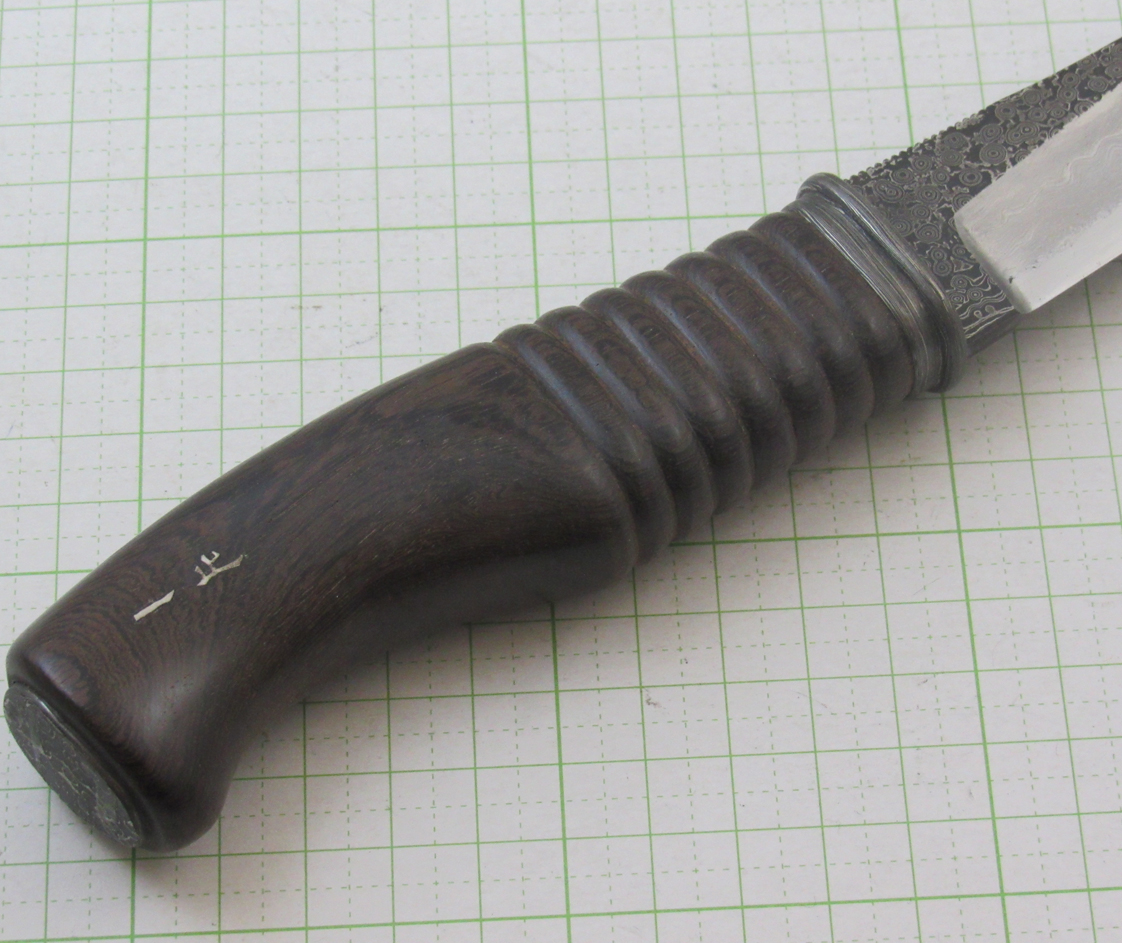 Bora K990 Steel Interrupt (Nickel Damascus) / Tagayasan Handle / Hilt (Nickel Silver Damascus) Blade Length 150mm / Handle Length 123mm / Blade Thickness 5.3mm / Weight 230g (Body Only) *Special Leather Sheath (Eggplant Can Included)