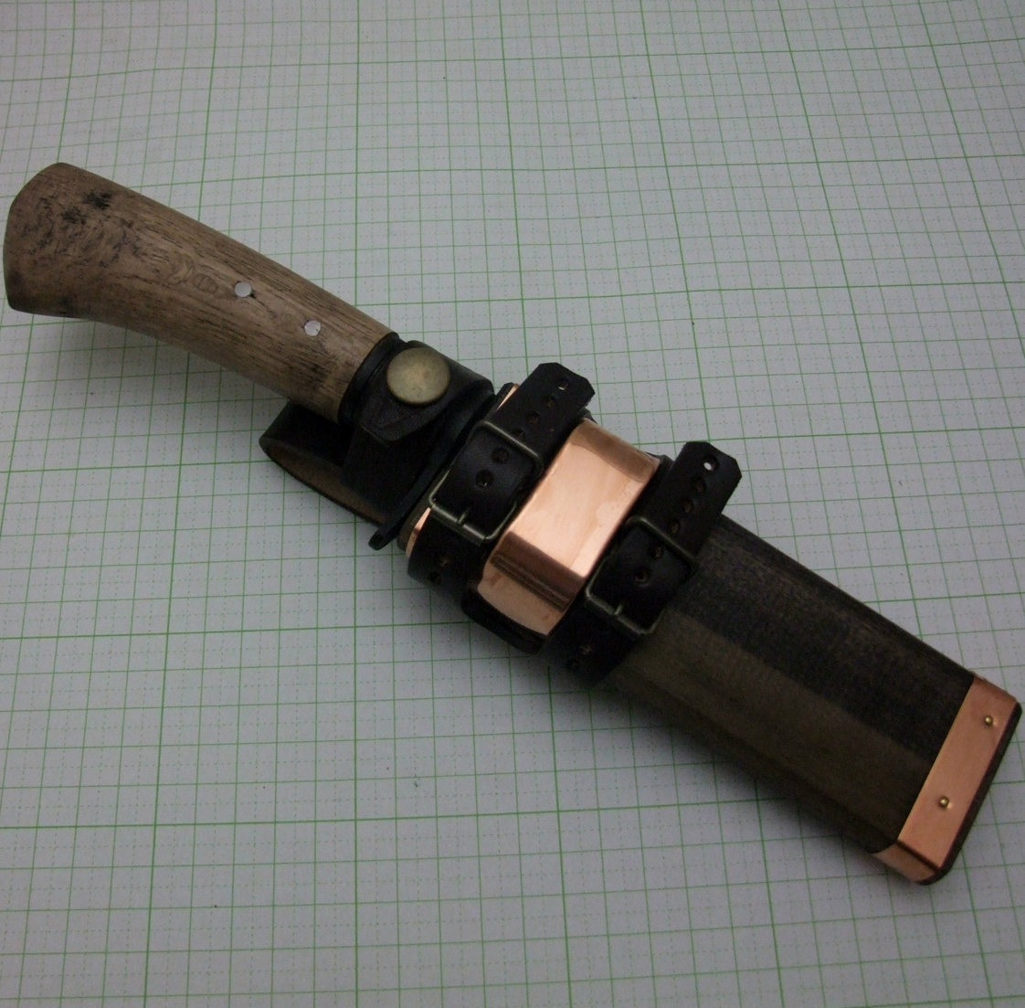 安来青紙鋼割込み / 樫柄 / 鋳造黒塗鉄鍔刃長130mm / 柄長135mm / 重量330g / 刃厚6.0mm※朴木鞘バンド付き