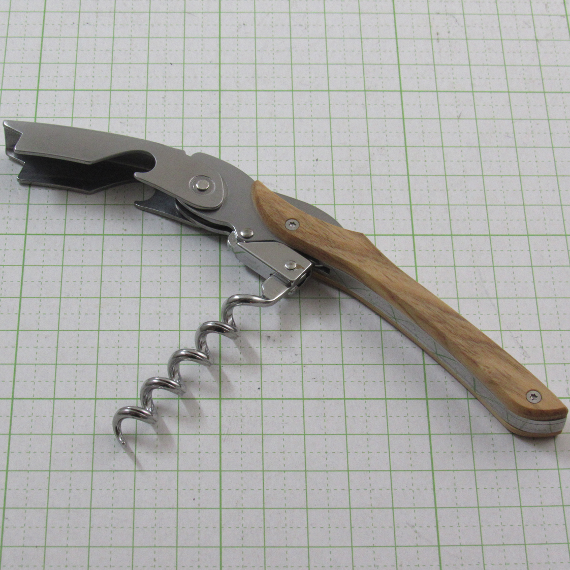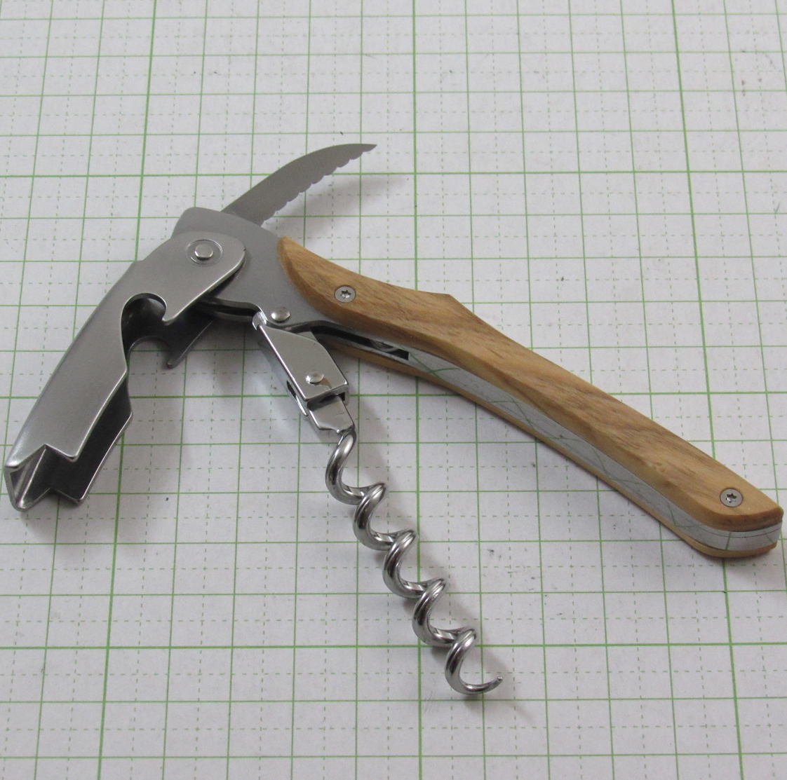 Stainless Steel/Olive Wood Handle Total Length 120mm [Features] A new sommelier knife that uses a double pivot screw to vertically pull up long corks in one motion.