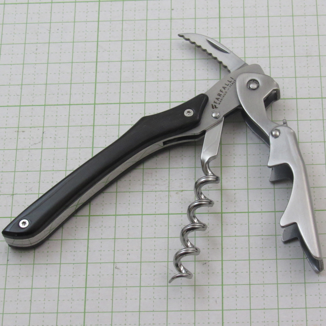 ステンレス鋼 / ホーンハンドル(水牛角)全長120mm【特徴】天然素材のホーンハンドル。フックはダブルアクションで長いコルクもスムーズに引き上げられる仕様。