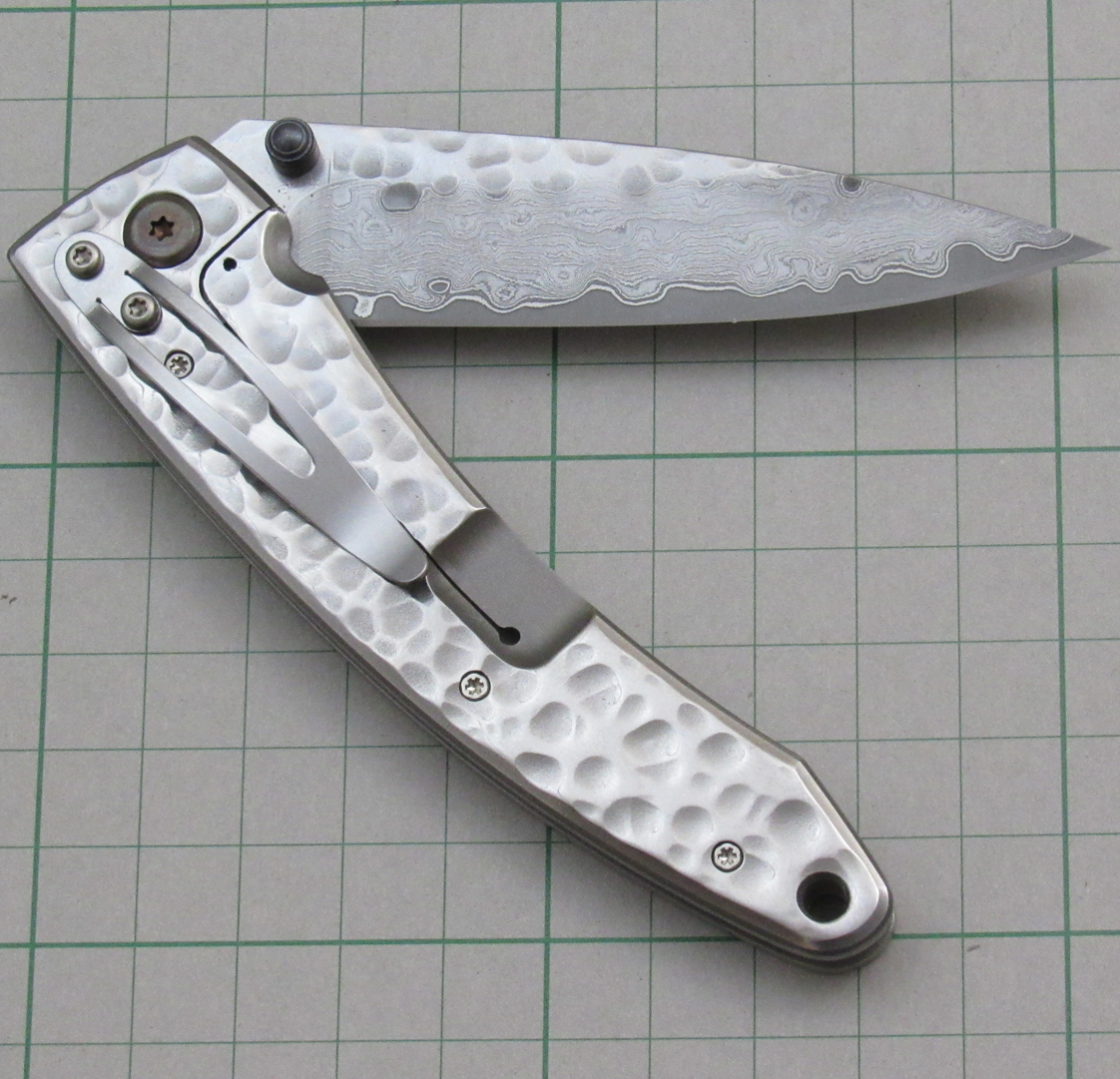 V gold No. 10 Damascus steel (33 layers) / Handle material – 420J2 stainless steel / Frame lock blade length 85mm / Handle length 110mm / Weight 113g *Belt clip included
