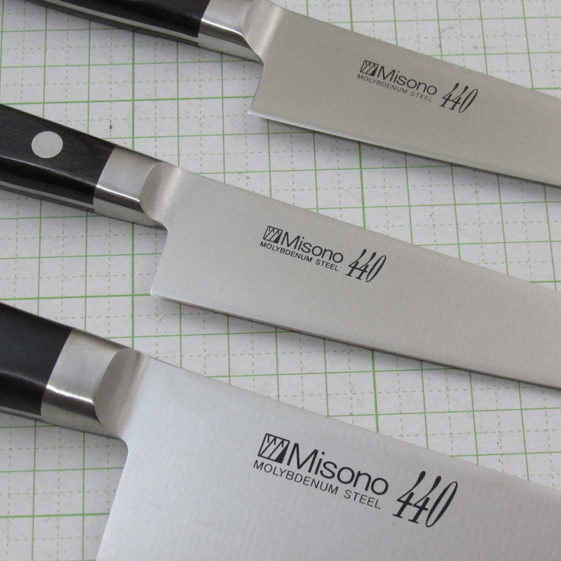 モリブデン440鋼 / 強化木柄(黒檀) / 三つ鋲(フルタング)